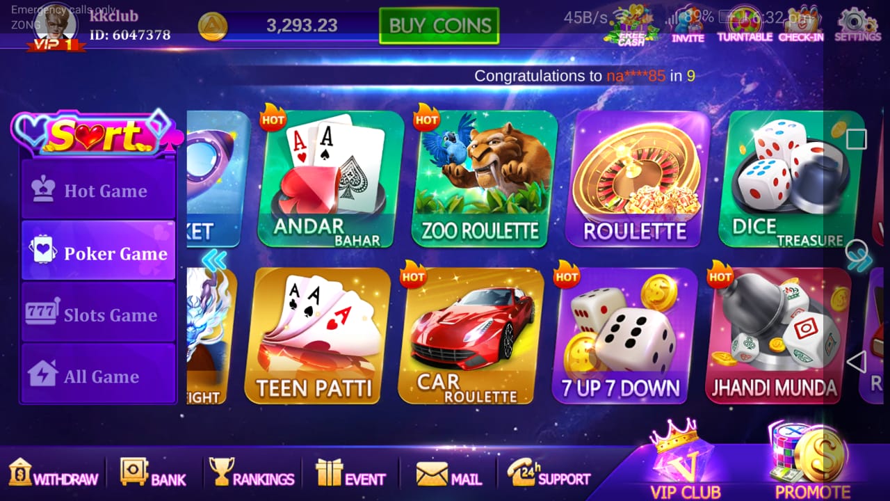 KK CLUB APK offers different gaming categories. Each category has a level of interest and skill.