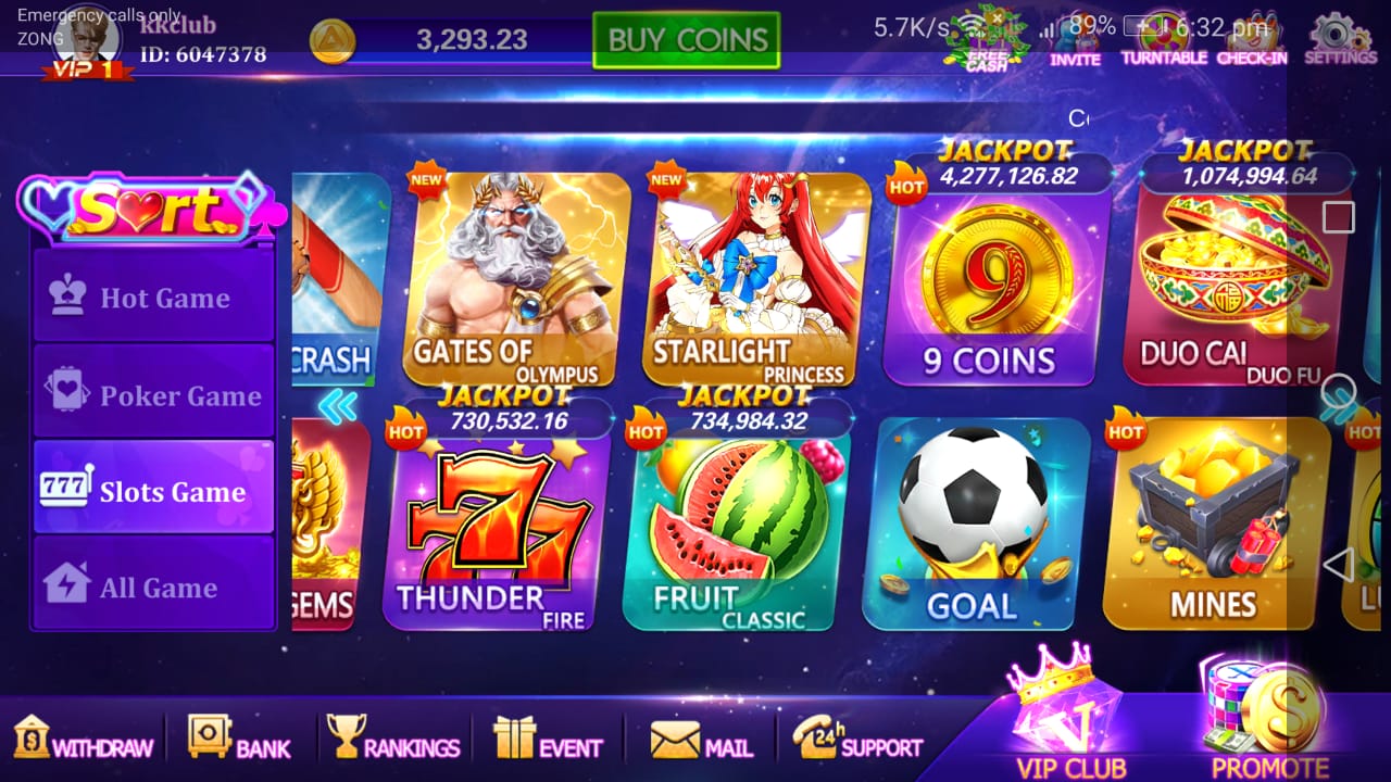 Game Lovers like to play slot games. This is why KK Club 1000 Apk has added games like Thunder, Duo, Maya, Mammoth, Jackpot, Bandidos, Bingo Pig, and Gorilla Realm.